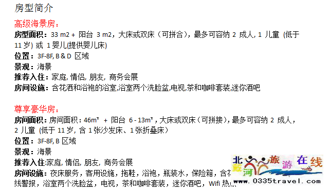 注:6月19日房價(含雙早):高級海景房 1500元 尊享豪華房 1950元 6月20日房價(含雙早):高級海景房 1650元 尊享豪華房 2250元 6月24日房價(含雙早):高級海景房 1550元 尊享豪華房 2080元 6月25-26日日房價(含雙早):高級海景房 2250元 尊享豪華房 3000元 敬請垂詢:13785079044 18633570222 15703350808 | ||||