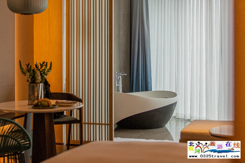 “海邊的生活,期待的是心靈的放松與沉淀,不適合過(guò)多的贅述?!笨头空w設(shè)計(jì),細(xì)到床品、護(hù)膚品等都獨(dú)具巧思。戶戶望海全景浴缸、品牌特色床品、高速無(wú)線網(wǎng)絡(luò)、英國(guó)護(hù)膚品THISWORKS等一些列高檔設(shè)施和洗浴用品,為這場(chǎng)在蔚藍(lán)海岸的奢旅帶來(lái)極致純粹的享受。傍晚時(shí)分,斜陽(yáng)余暉灑入室內(nèi),空間被鍍上一層黃暈,無(wú)一不透露華美而內(nèi)蘊(yùn)深遠(yuǎn)的生活追求。